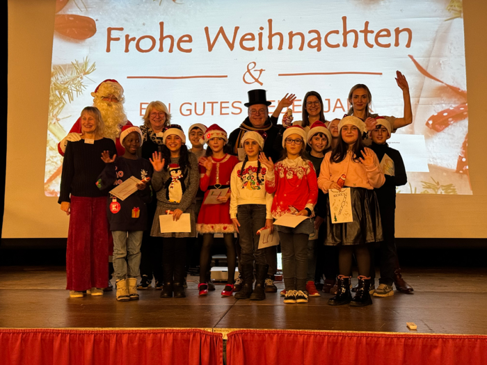 Neben den Geschenken – in diesem Jahr in Form von Gutscheinen – , die die Kinder mit ihren Eltern einlösen können, gab es ein aktives Programm mit viel Musik zu Beginn und am Ende. Gleich zu Beginn forderte die Frauengesangsgruppe mit Mascha Kerstan, Lisa Harms, Alexandra Göing und Sara van der Werf alle Gäste zum Mitsingen mehrerer Weihnachtslieder z.T. in englisch und spanisch auf. Weiter ging es mit dem gemeinsamen Schmücken des mittig plazierten Weihnachtsbaumes, dem Zeichnen von weihnachtlichen Bildern und dem Basteln eines wunderschönen Weihnachtssterns. Ein Highlight war der Kontakt mit dem Weihnachtsmann, der von Tisch zu Tisch ging, die Kinder nach ihren Wünschen befragte und schließlich auch die Geschenke und einen Schokonikolaus an alle verteilte. Viele Kinder wollten unbedingt ein Foto mit dem Weihnachtsmann, was selbstverständlich umgesetzt wurde.